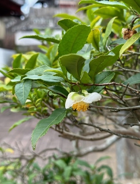 長崎平戸の陳信流にちなむ椿は「鎮信」 楚々とした、清らかな姿が美しいです